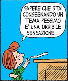 Ecco perché – quando arrivo al termine del percorso quinquennale con i miei studenti, allenati fin da subito se non altro per necessità, diciamo così, istituzionali alle varie tipologie di scrittura – mi chiedo sempre da dove possa nascere l’equivoco – pure così diffuso – che il tema sia (all’esame) la zona franca, una sorta di salva-vita buono per gli studenti svogliati. Di fronte alle tre tipologie d’esame
